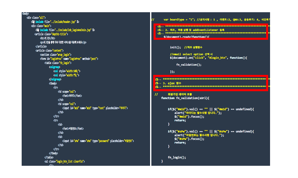 EventListener, ajax함수 호출 및 기타 함수 선언을 분리하여 작성.