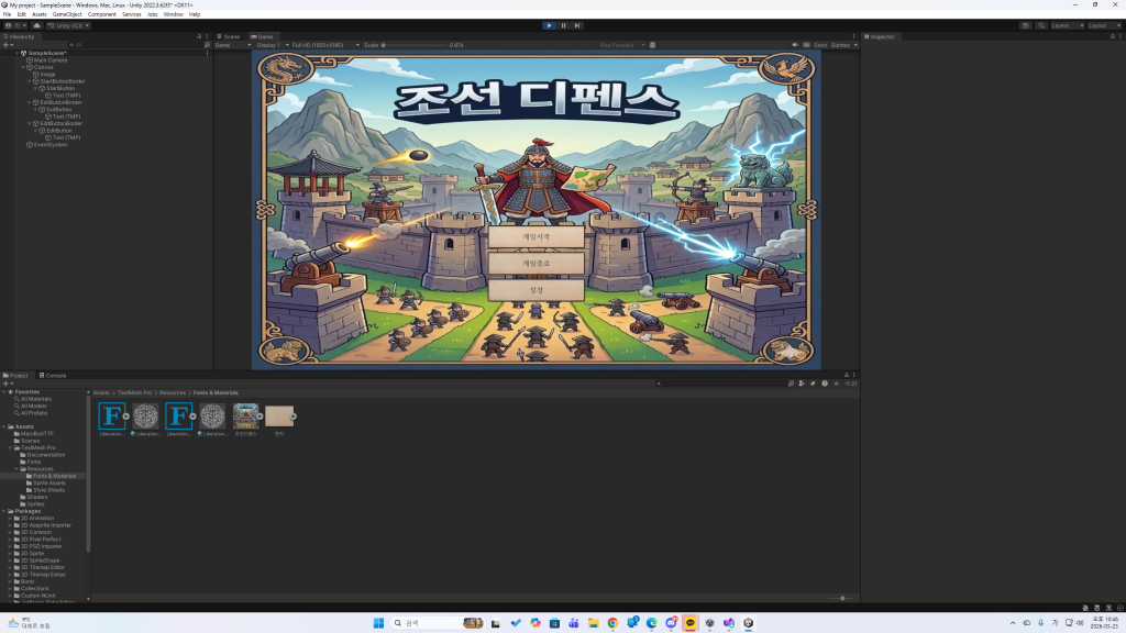 타이틀 화면 구성 및 시나리오 스테이지 구성으로 했습니다.